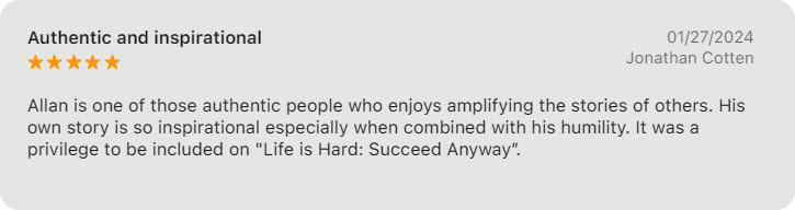 Welcome to the Life‘s Hard, Succeed Anyway podcast, where you will hear transformational stories, positive encouragement, and practical strategies from host Allan Blain and his guests to help you grow your mindset, reach your potential, live your dreams and experience a purpose driven, impact filled life! Learn from those that have learned the hard way so you don't have to.